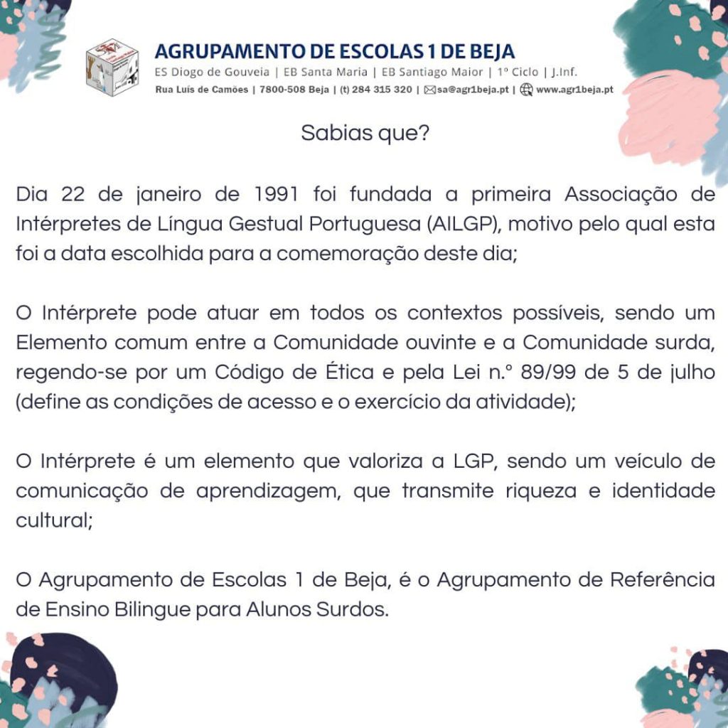 Como Agrupamento de Referência de Ensino Bilingue para Alunos Surdos, desejamos a todos os Intérpretes um dia feliz e agradecemos o seu trabalho, principalmente aos nossos Profissionais